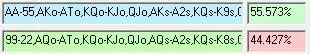 在这类翻牌面,我们的范围对抗按钮玩家的范围有55%的胜率,优势明显。