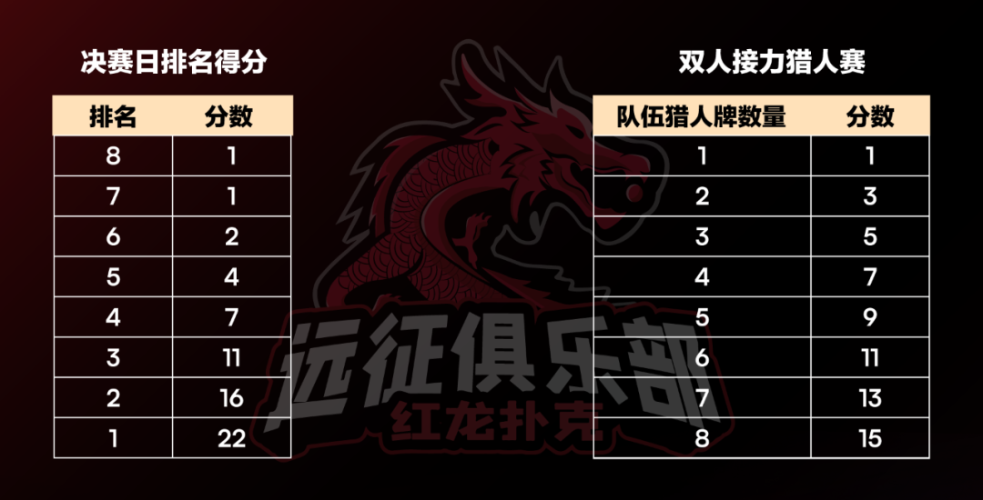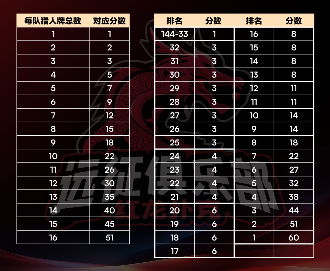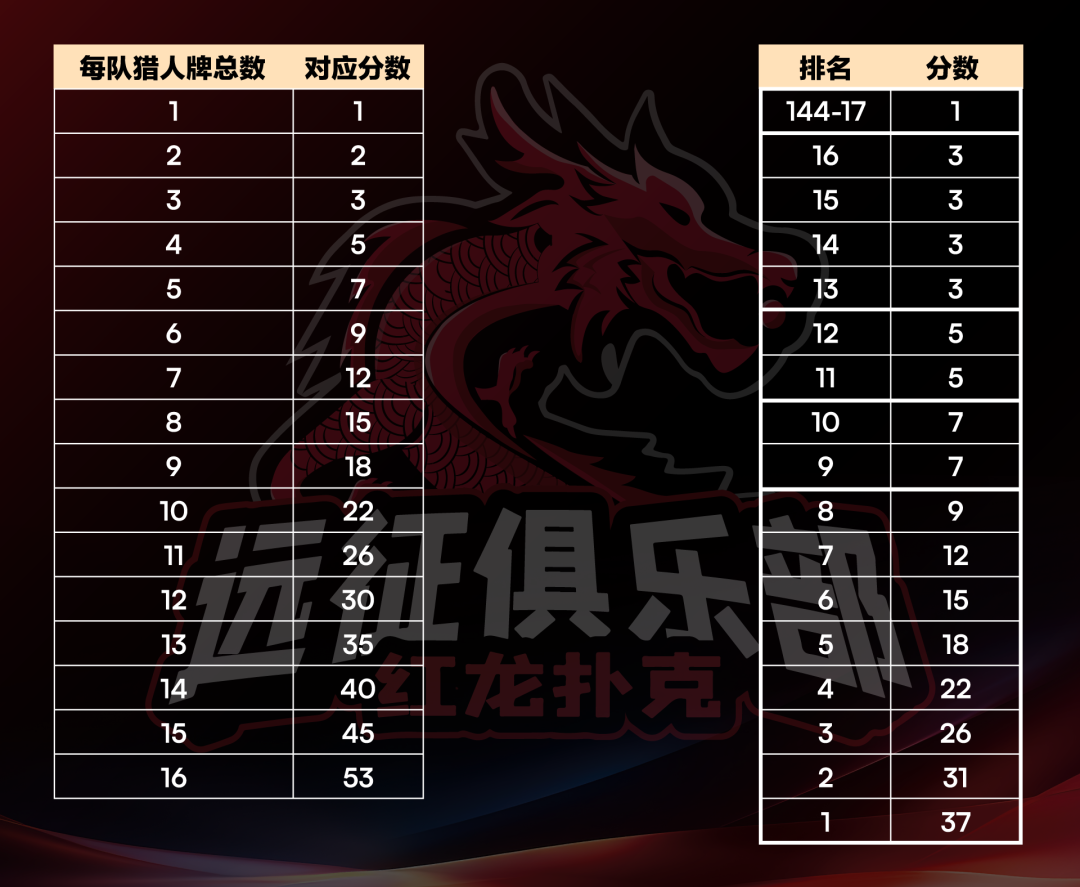 6. 猎人牌数量及分数计算如下图,分数计入队伍总排名。