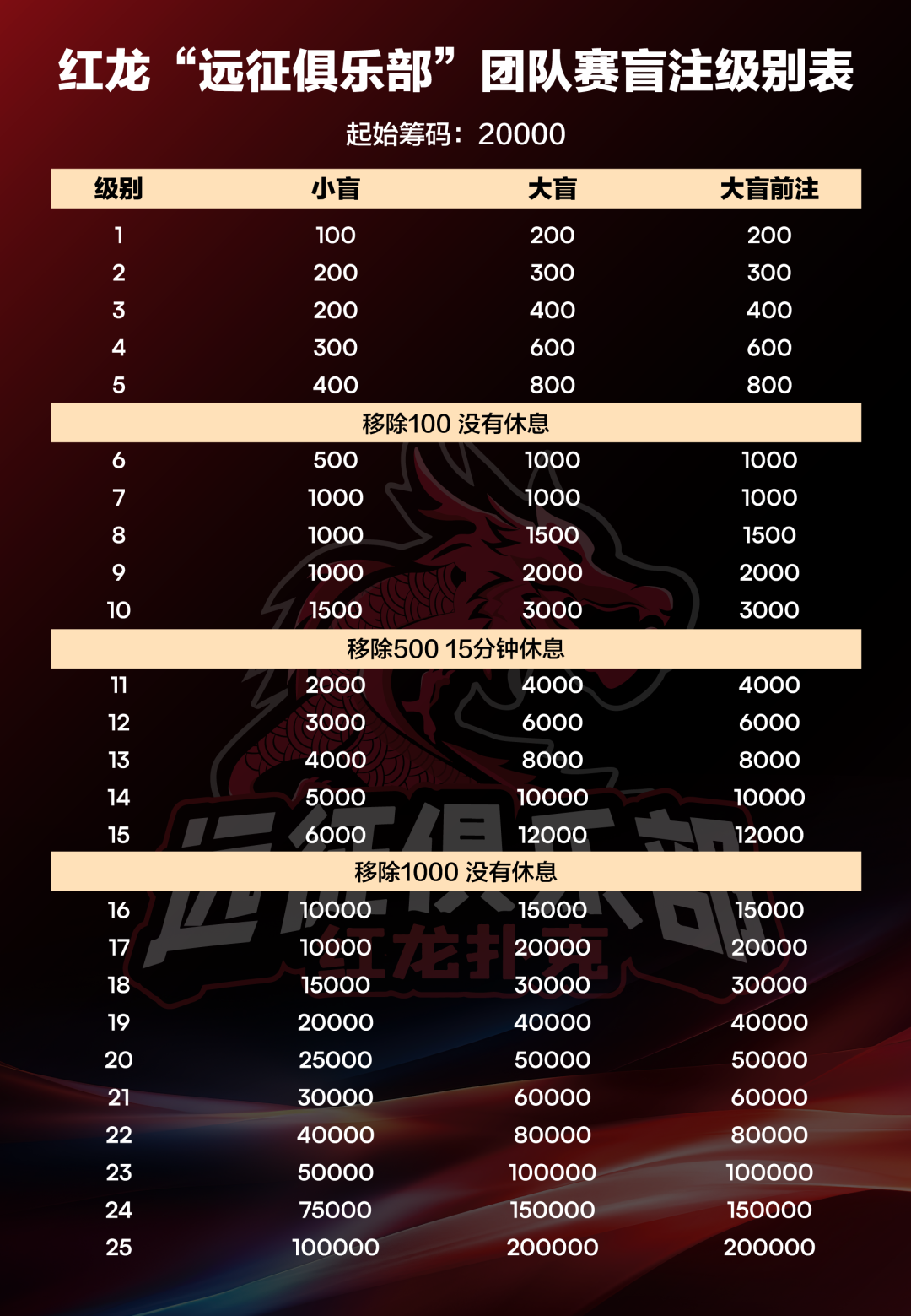 特别提醒:参加本次远征俱乐部冠名红龙团队赛的玩家不得佩戴任何线上扑克平台logo,队伍名称也不得包含任何线上扑克平台信息。