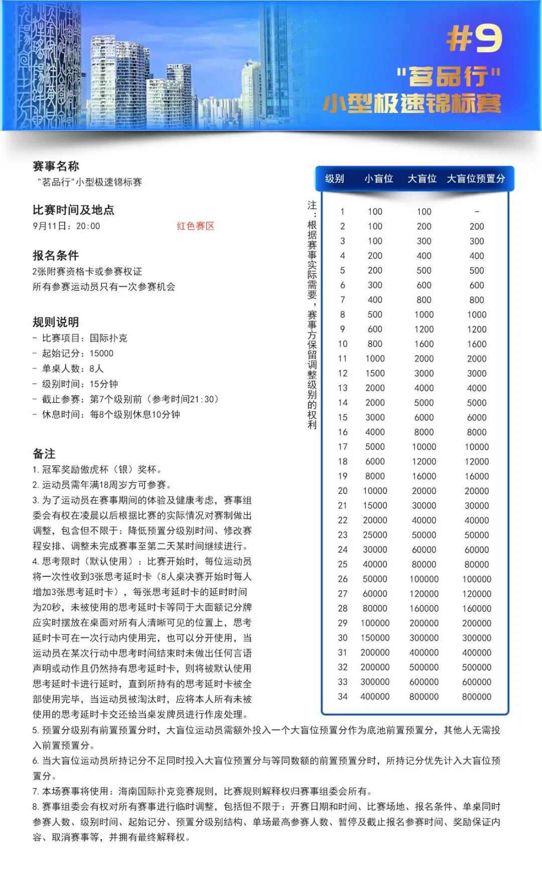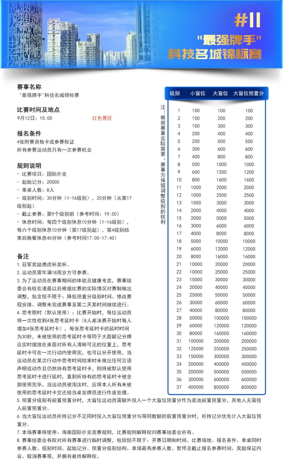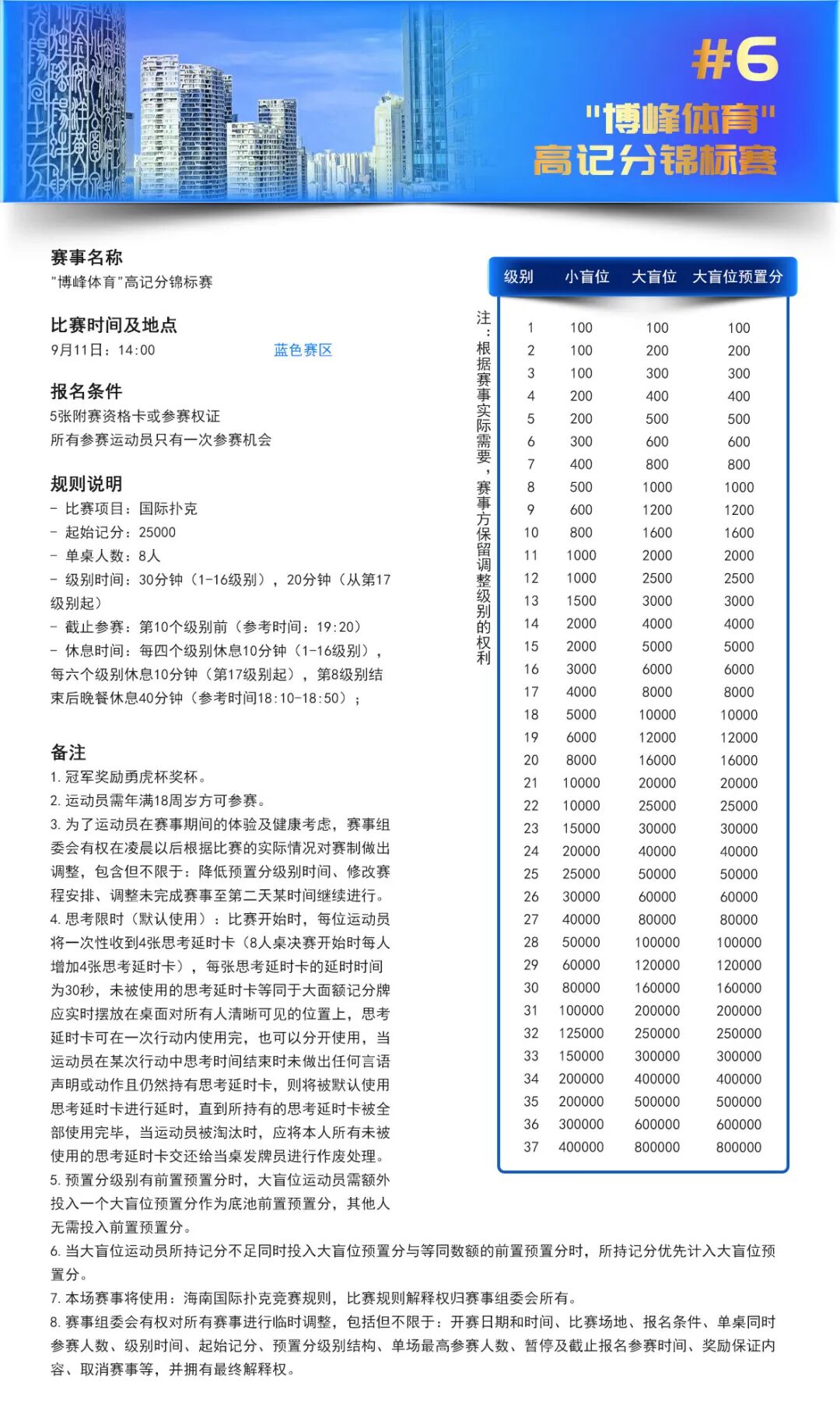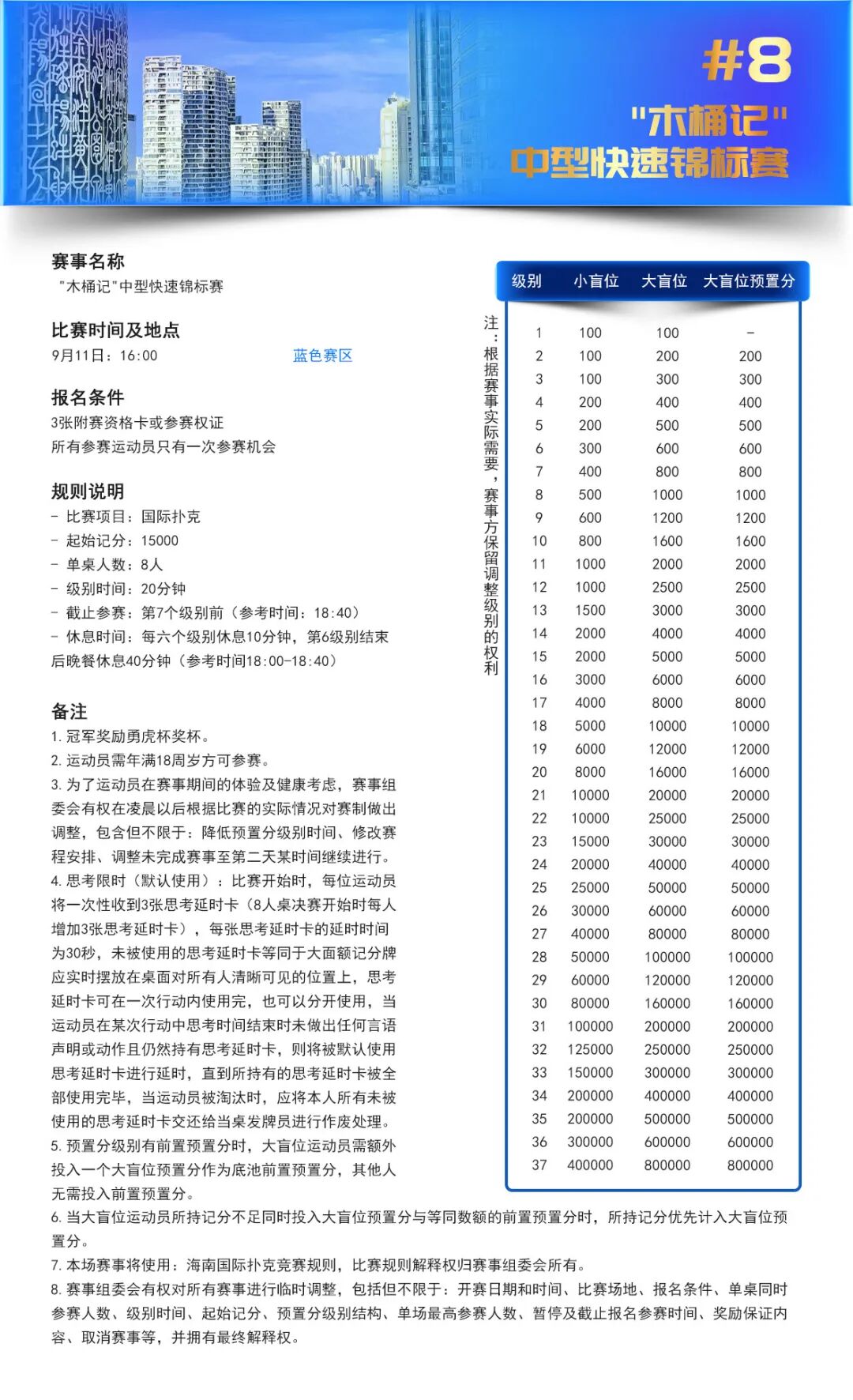 5.本次比赛除特定6人桌外,其余全为8人桌赛事;