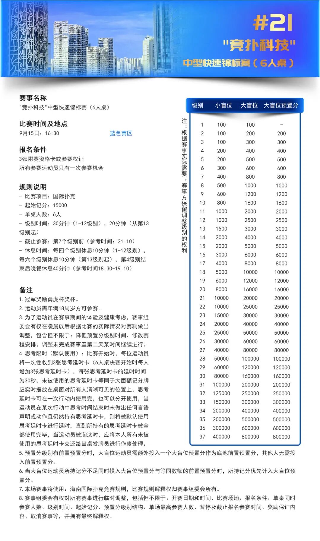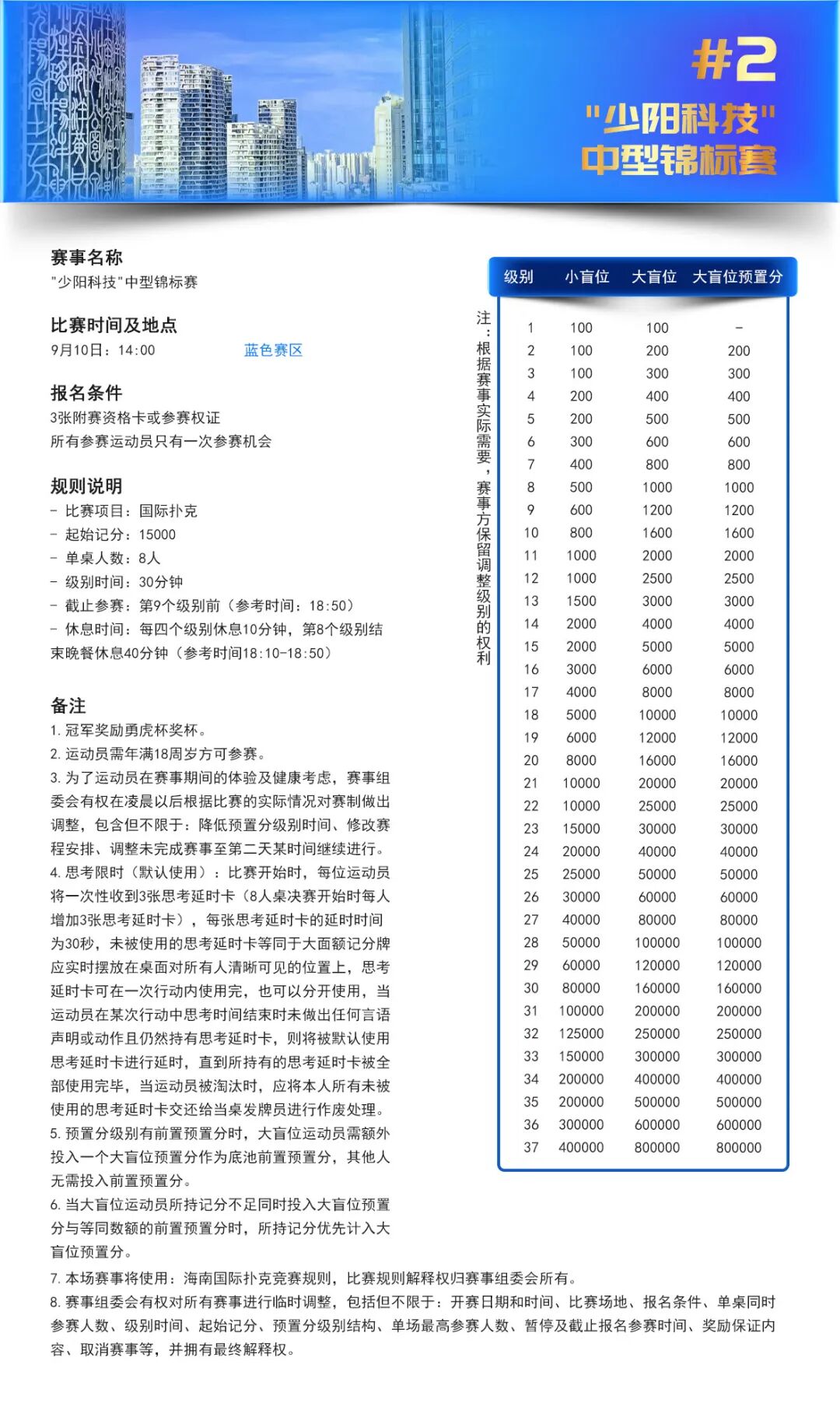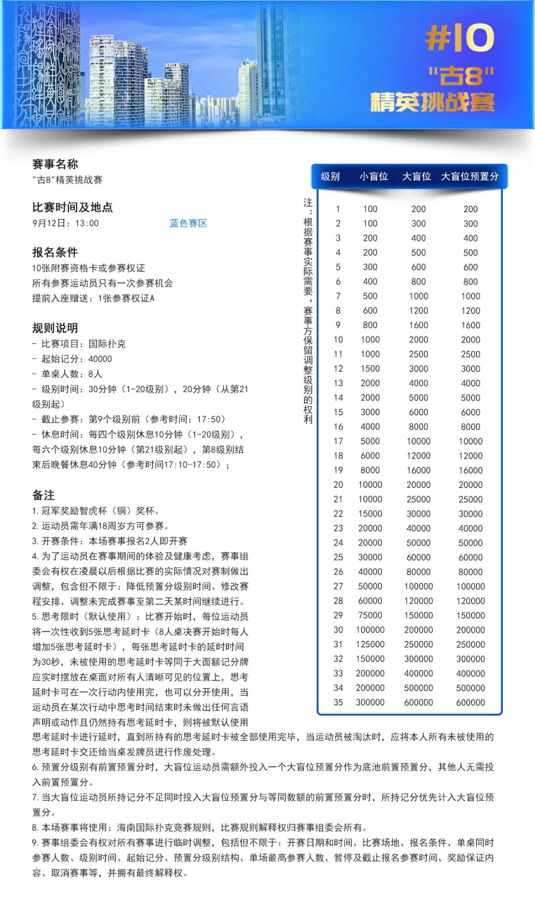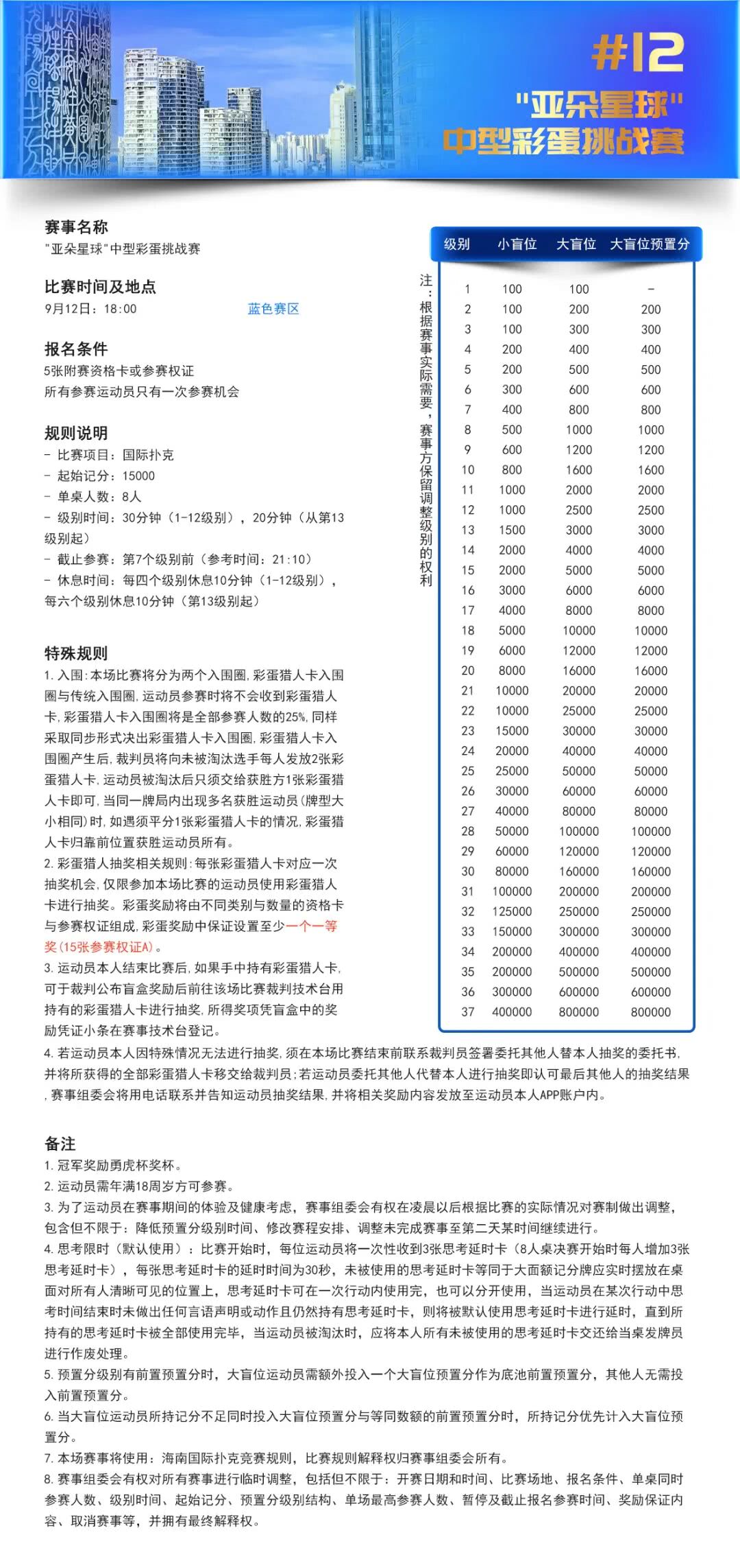5.本次比赛除特定6人桌外,其余全为8人桌赛事;