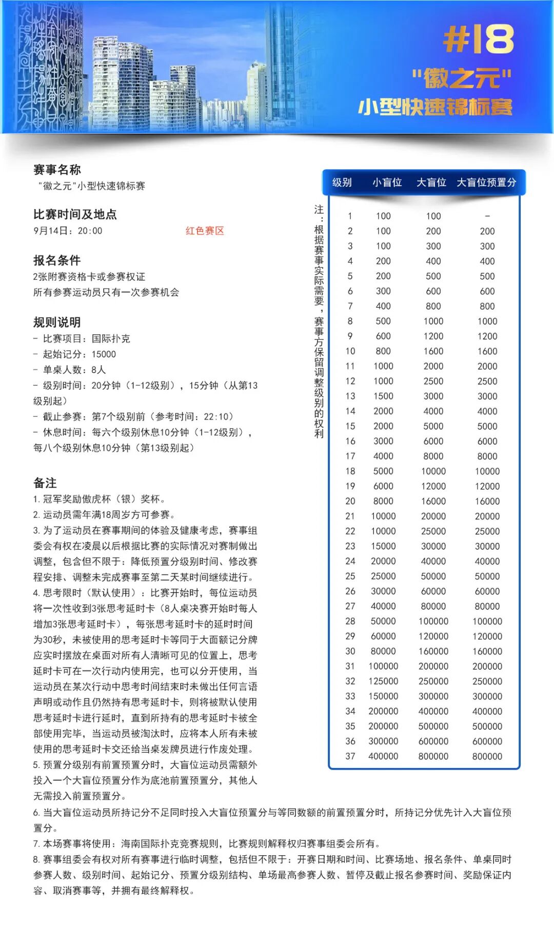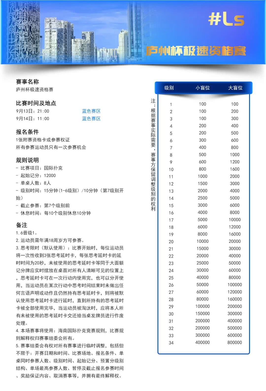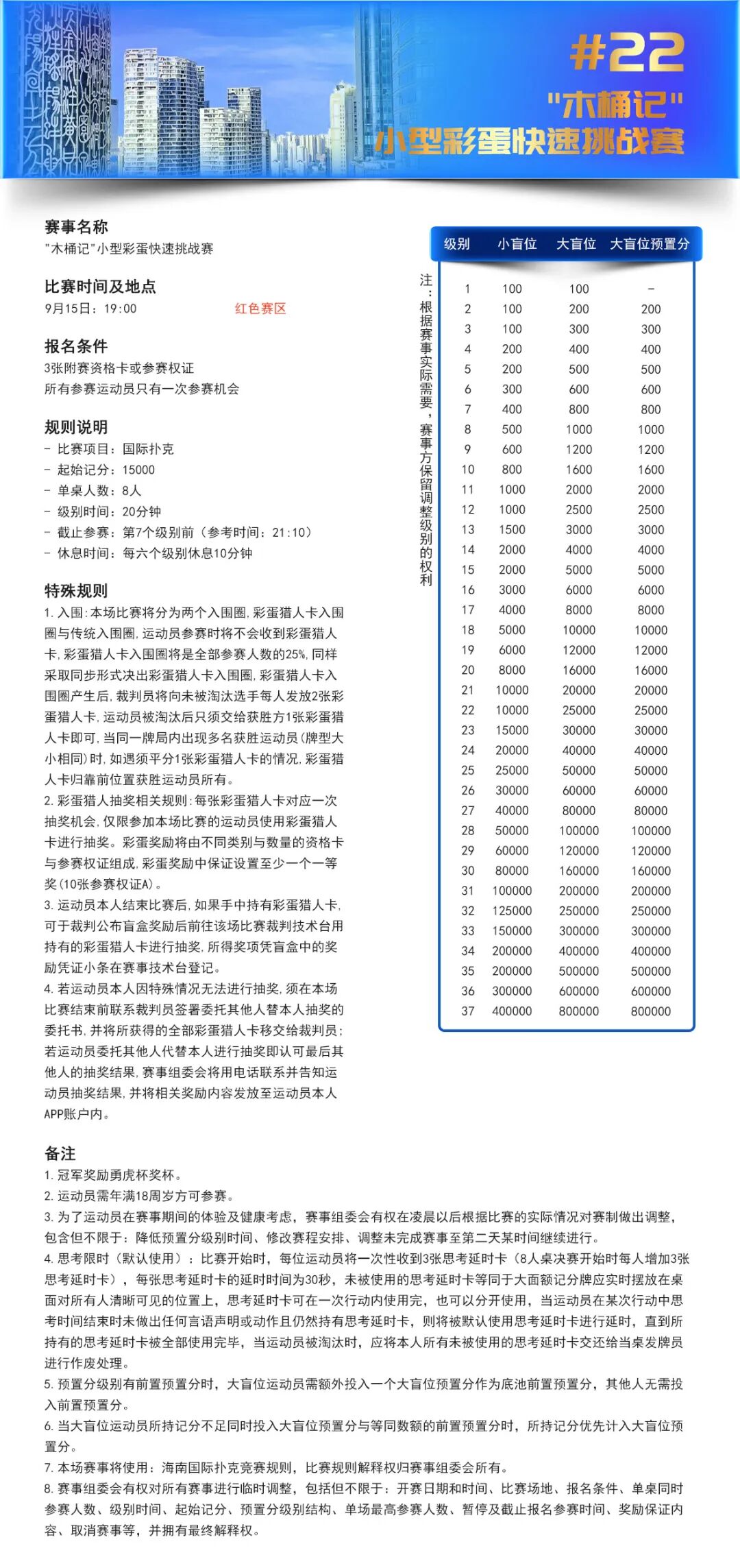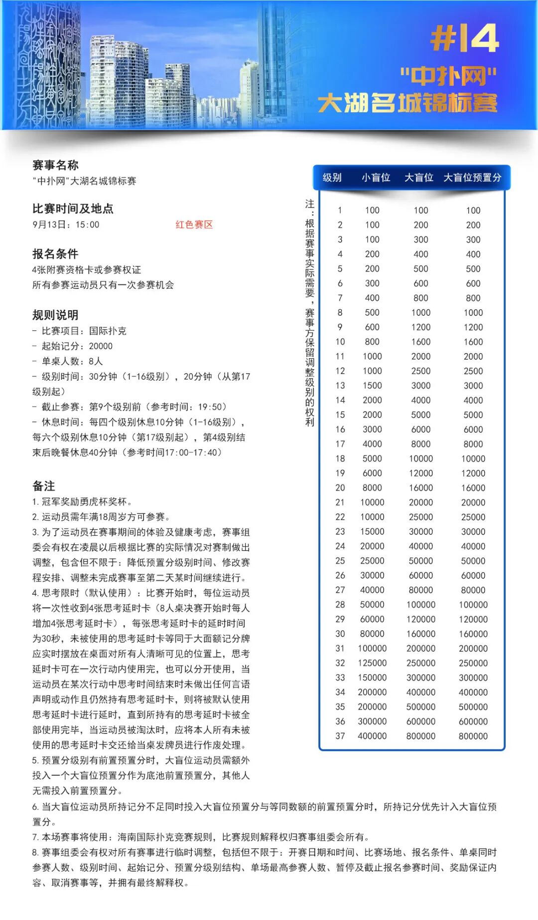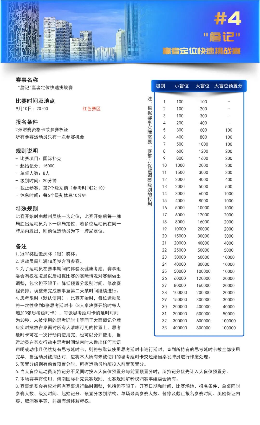 5.本次比赛除特定6人桌外,其余全为8人桌赛事;