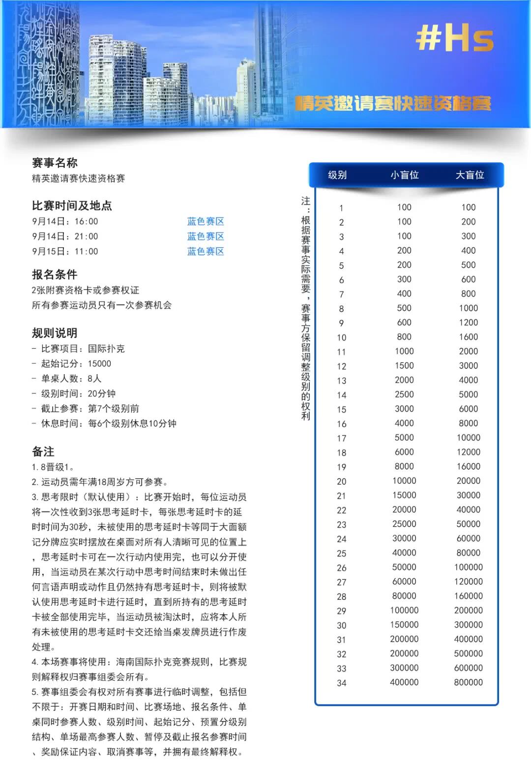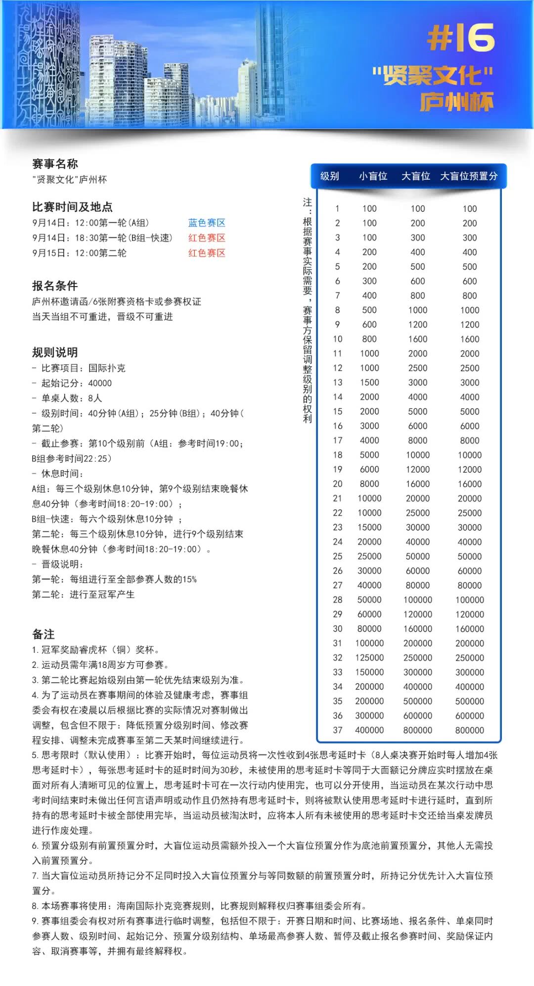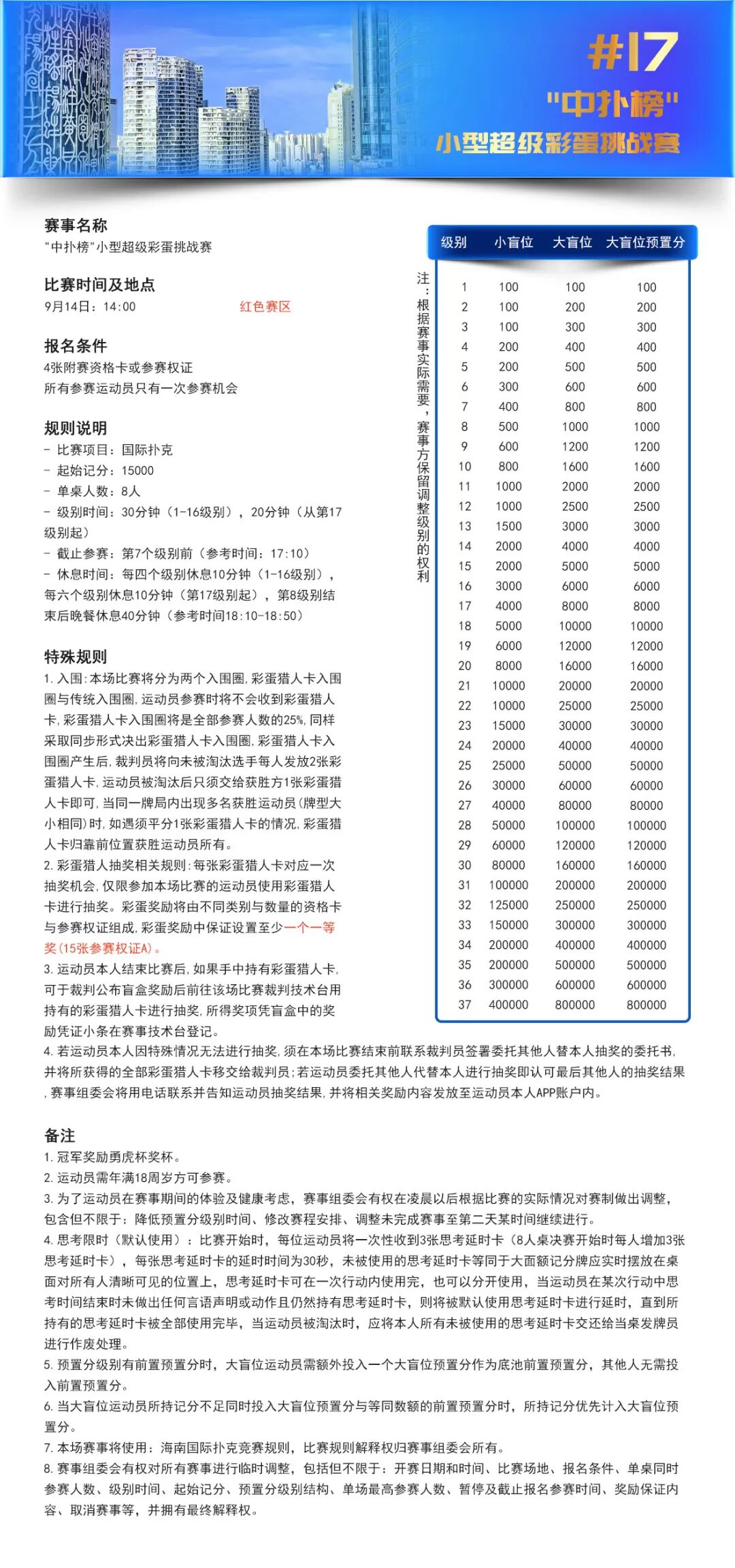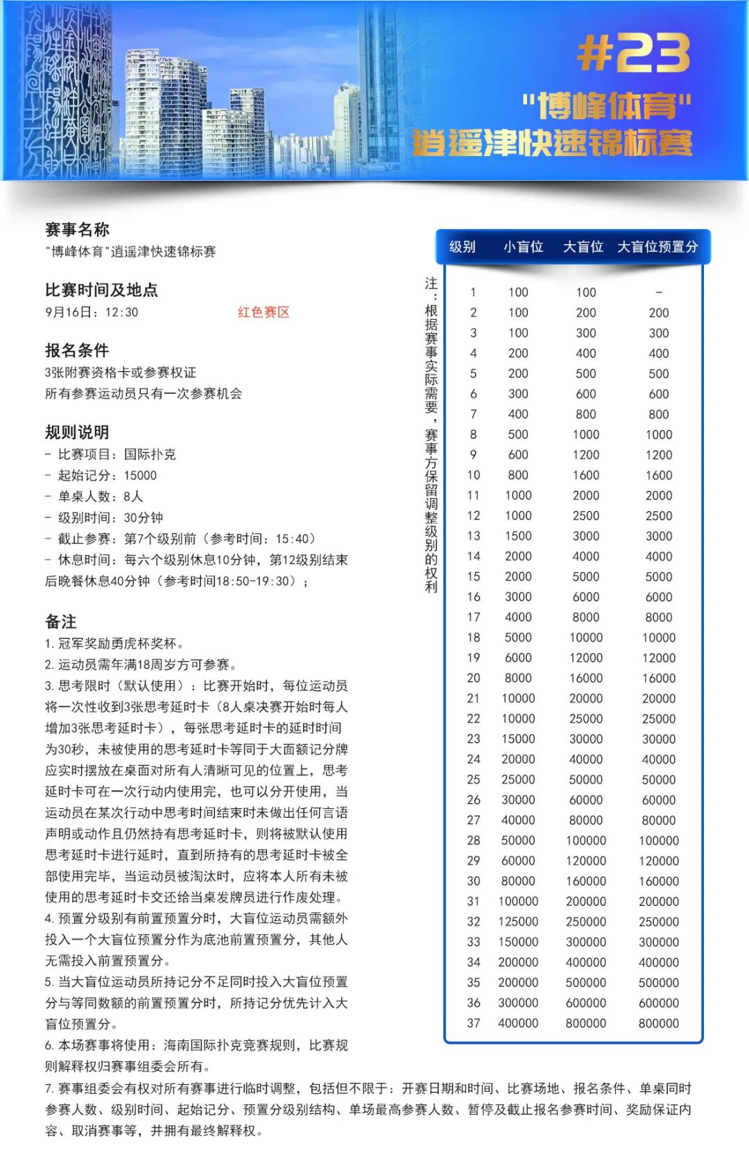 5.本次比赛除特定6人桌外,其余全为8人桌赛事;