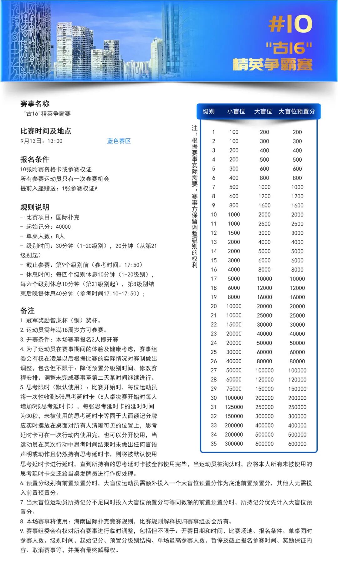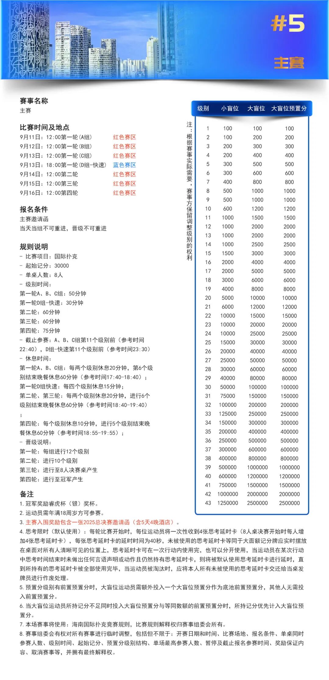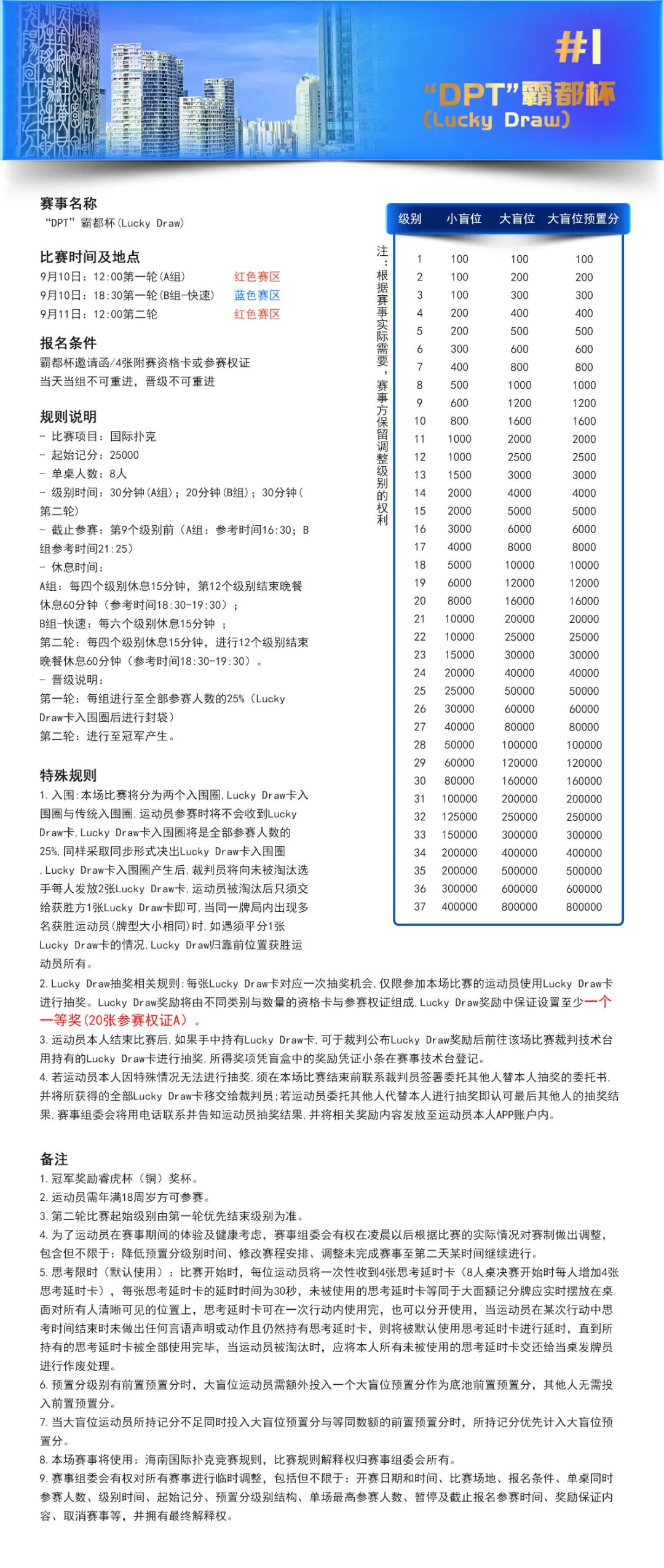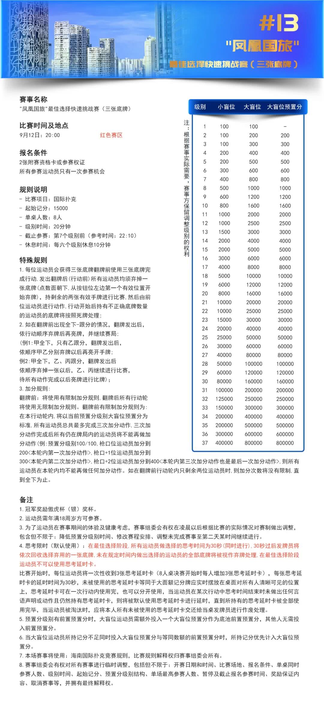 5.本次比赛除特定6人桌外,其余全为8人桌赛事;