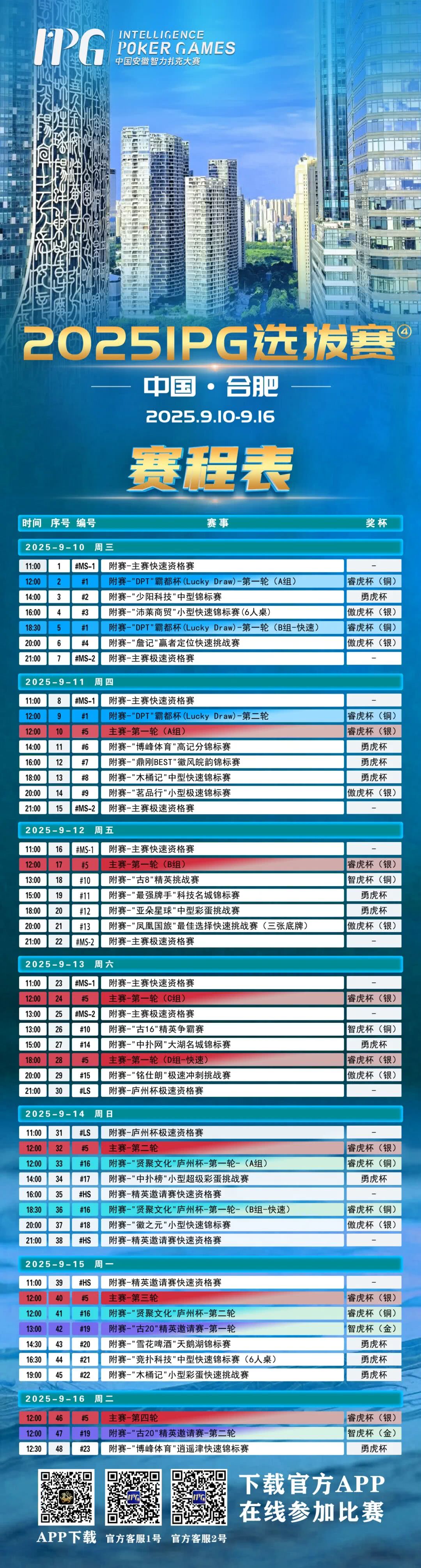 2025IPG选拔赛合肥站将于2025年9月10日至2025年9月16日在安徽合肥元一希尔顿酒店举行!