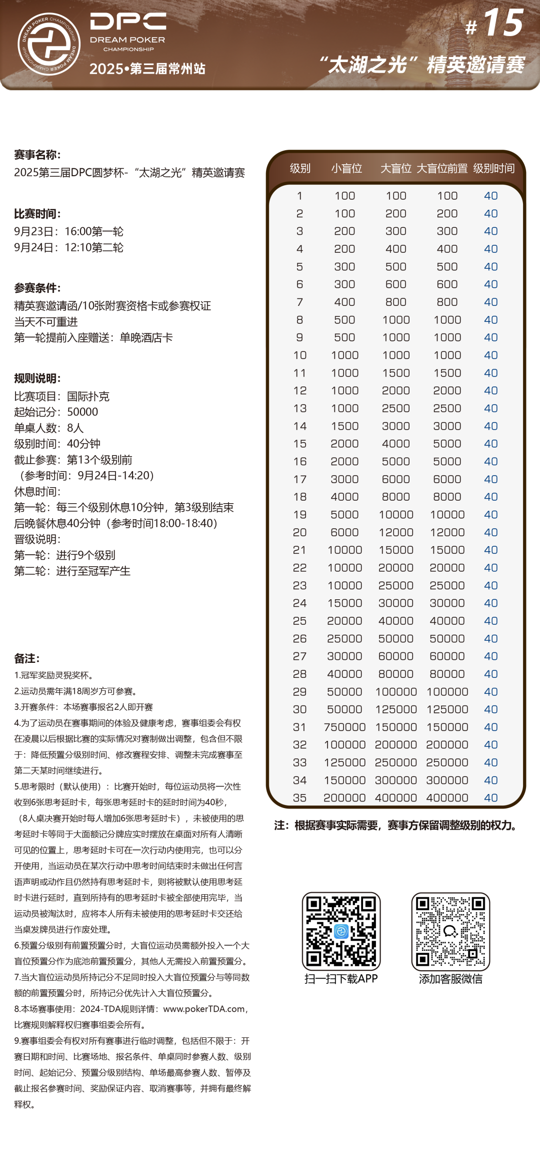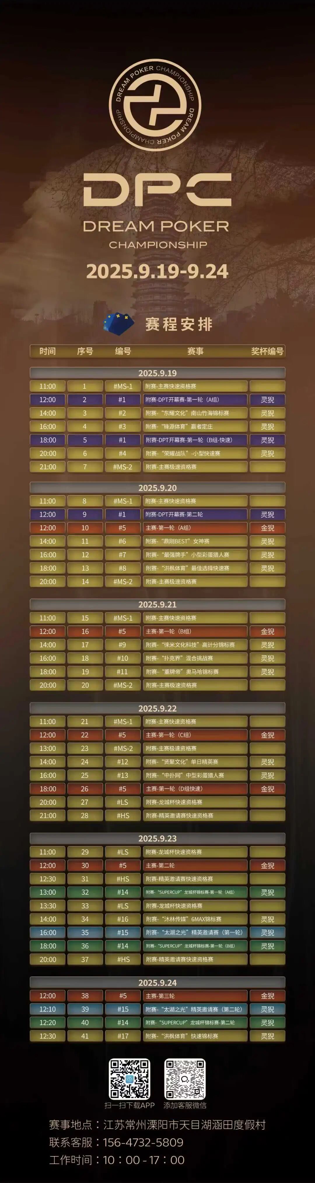 2025DPC圆梦杯将于9月19日-24日在江苏常州溧阳市天目湖涵田度假村举行。