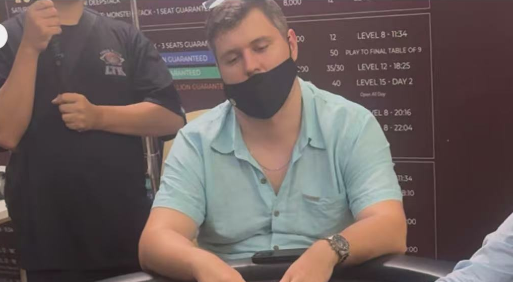 BTN跳出来AII IN,陈光武手拿99看对方的BLUFF,果断跟住