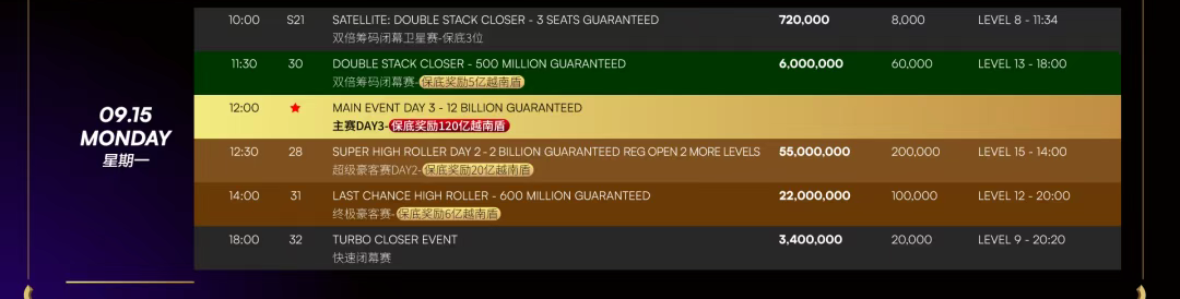比赛来到FINAL TABLE,经历过两天的战斗,选手们斗志昂扬,剑指冠军,比赛在9月15日上午12:00开始选手们为了冠军荣誉展开了激烈较量!让我们来回顾冠军诞生全过程!