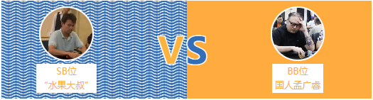 UTG位选择ALL IN1700万,这里水果大叔下了重注阻止CO位孟广睿进入,而国人孟广睿思考过后跟不动而选择弃牌,双方跑马