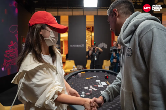 自此之后,Ceesvin展现出决赛桌统治力,先淘汰八名选手中其中五人,最终在单挑阶段,以翻牌天顺子,击败对手Lili Tang的口袋对Q,成功驯服象征至高荣誉的APT主赛事24K金狮奖杯。