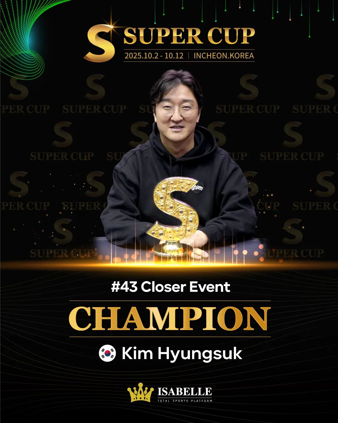 最终,徐致远成功夺得 SUPER CUP 仁川站主赛事冠军,实现荣耀登顶!而同样表现出色的金龙收获了本次比赛的亚军佳绩,为中国选手在本次赛事画下了浓墨重彩的一笔。