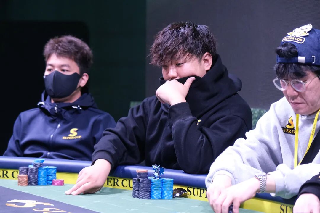 拥有420万记分牌的日本选手GOICHI KAWASAKI在小盲位手持KQs开池,拥有632万记分牌的大盲位的韩国选手PARK JAE SUNG手持3To全下抢盲,GOICHI KAWASAKI思考后跟注,5张公共牌发出了JA873,PARK JAE SUNG击中底对3成功收下底池,日本选手GOICHI KAWASAKI被淘汰出局,获得SUPER CUP主赛的第5名,恭喜他。