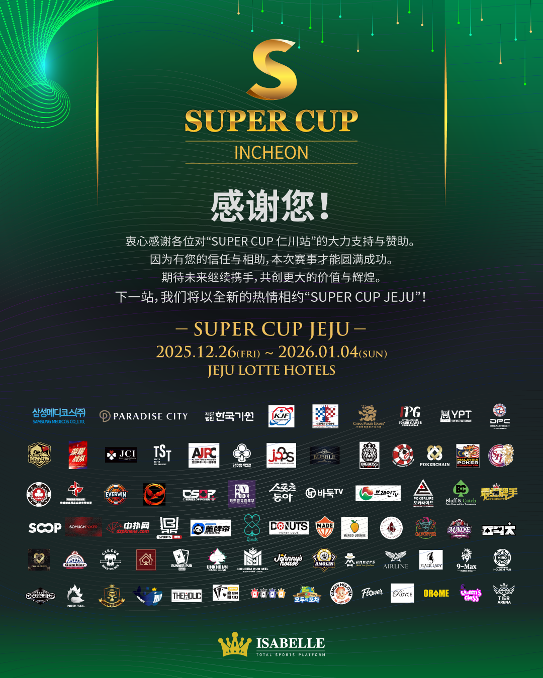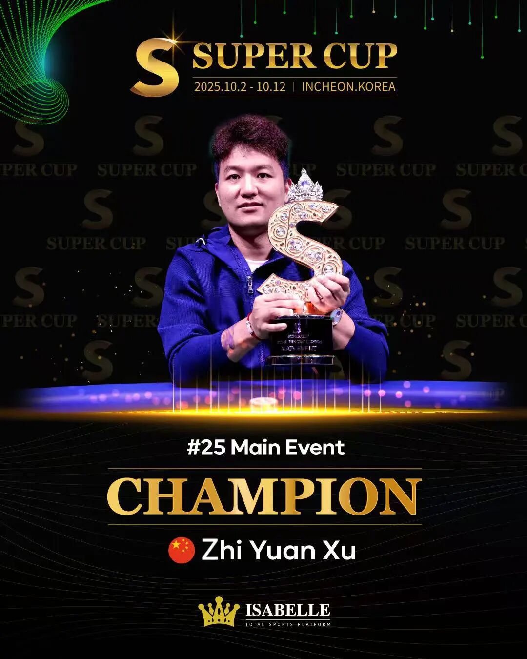这位以冷静与谦逊著称的选手,用实力与平常心诠释了冠军的真正含义。SUPER CUP仁川站的胜利,或许只是他国际扑克征程的起点。