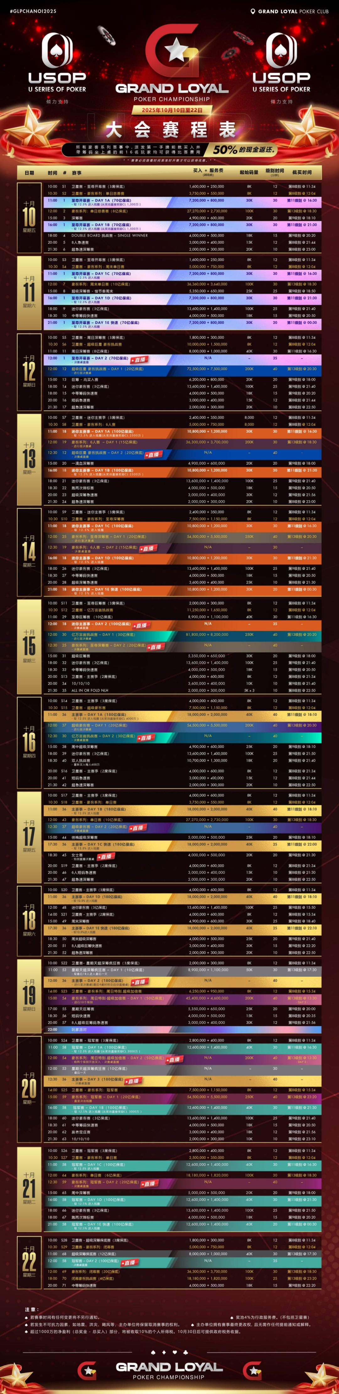 当地时间10月12日12:00,将开启至尊开幕赛DAY2的终极对决。赛事将通过FACEBOOK官方账号“Grand Loyal Poker Club”进行全程直播,让全球扑克爱好者共同见证王者的诞生。