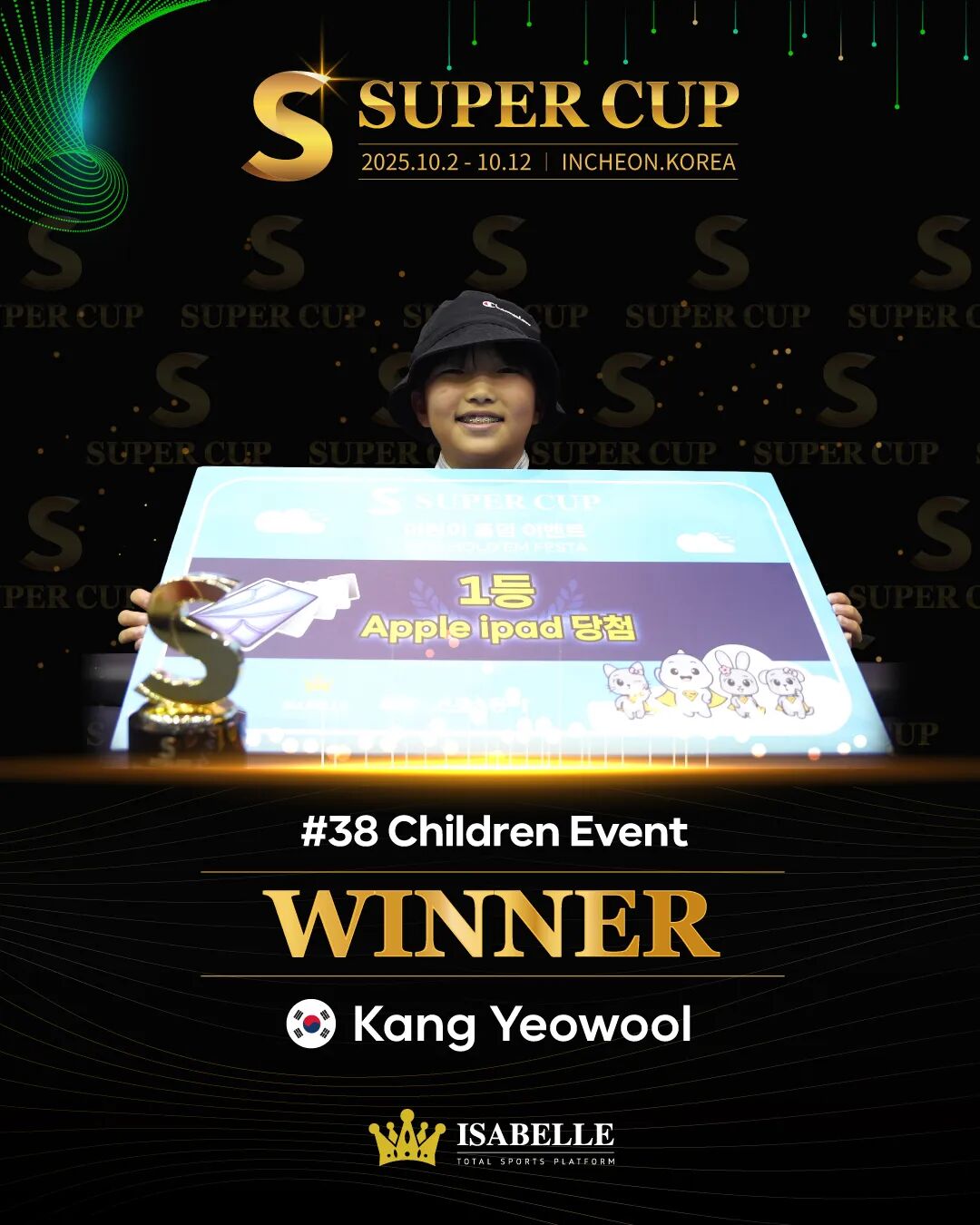 非常难得一见,在SUPER CUP的赛场上,专门为孩子设立了一场比赛,本场比赛由韩国东亚日报赞助,来自全国各个小学的学生自由报名而来!最终,恭喜Kang Yeowool获得冠军头衔,收获APPLE IPAD一部!