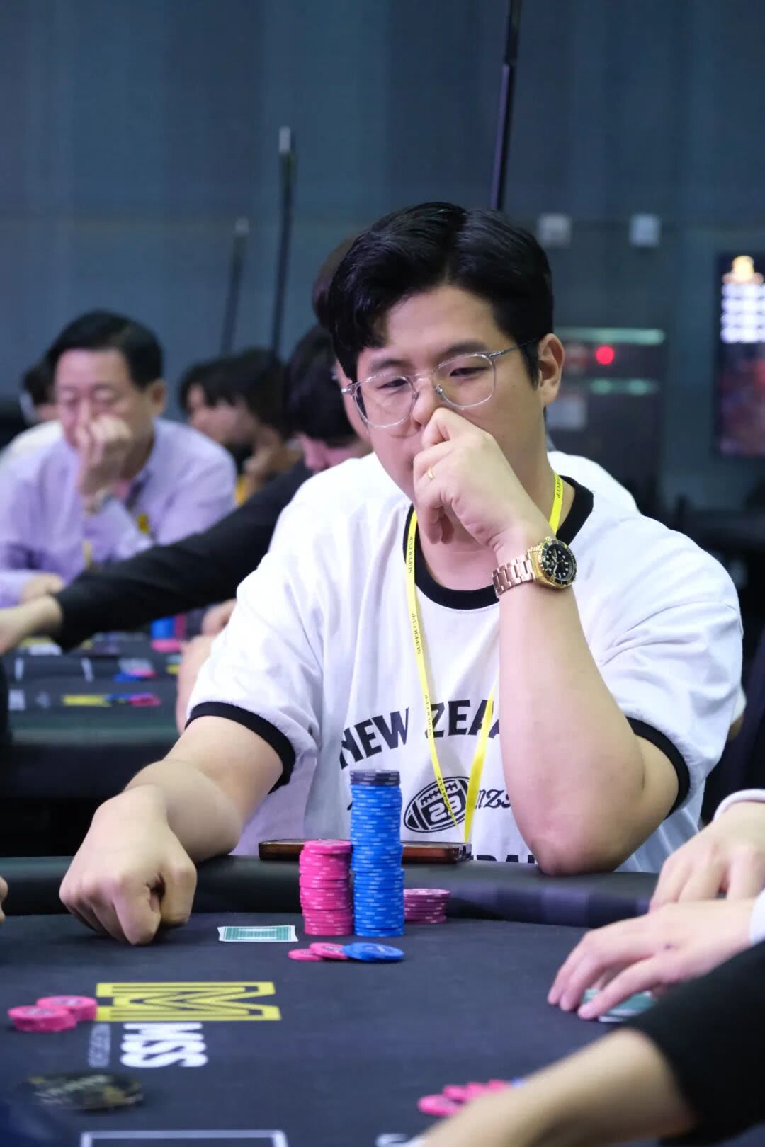 当地时间10月11日 12:00AM,保底8亿韩币1055人参赛的主赛继续摁下播放键,1055人中的132位晋级选手重返赛场,他们将数日的蛰伏与野心,全部化作筹码间碰撞的余响,全力向着冠军王座发起冲击!