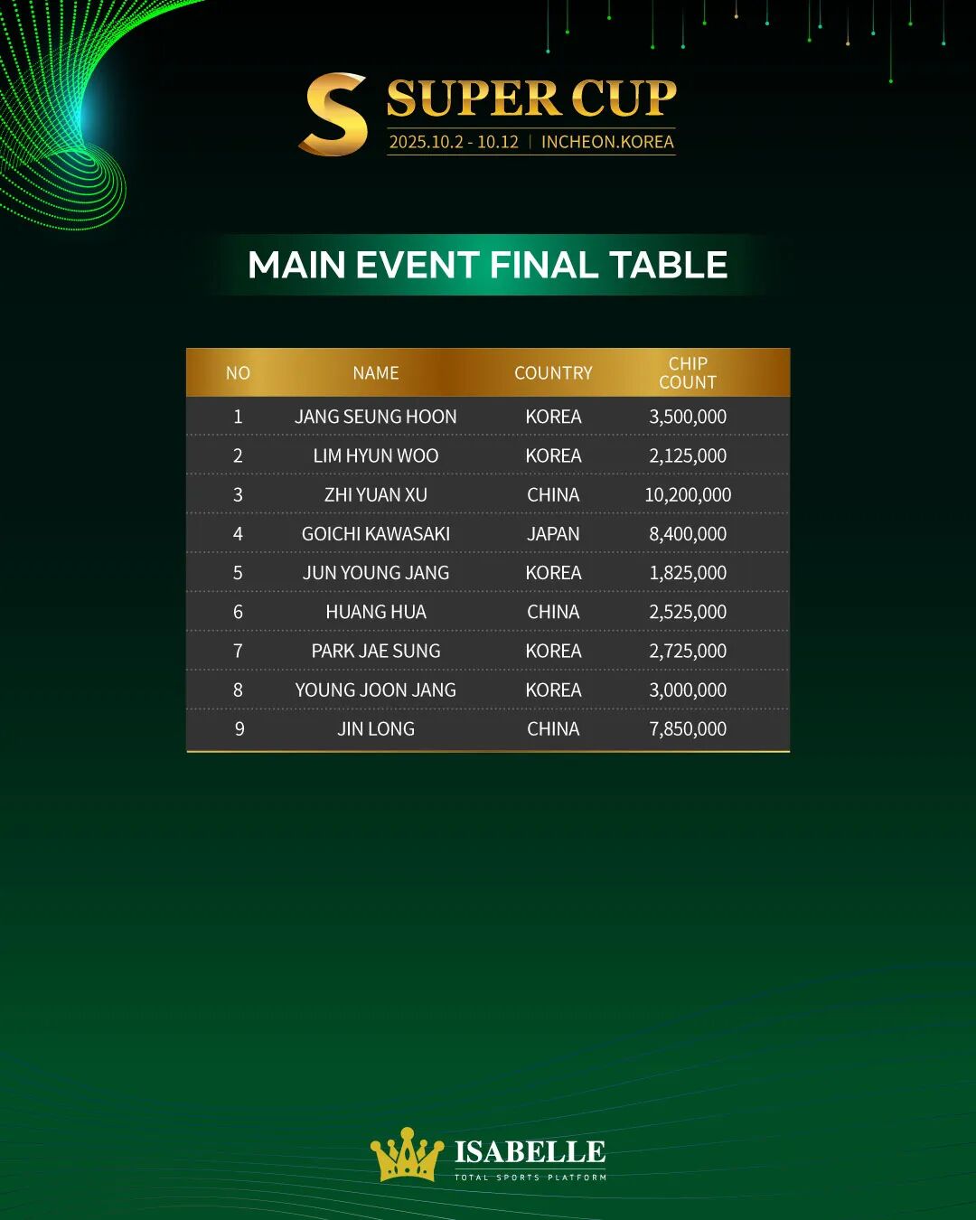 是老牌强者续写辉煌,还是黑马选手异军突起?主赛事冠军奖杯终将花落谁家?锁定Super Cup仁川站,共同感受扑克竞技最极致得得热血与激情!