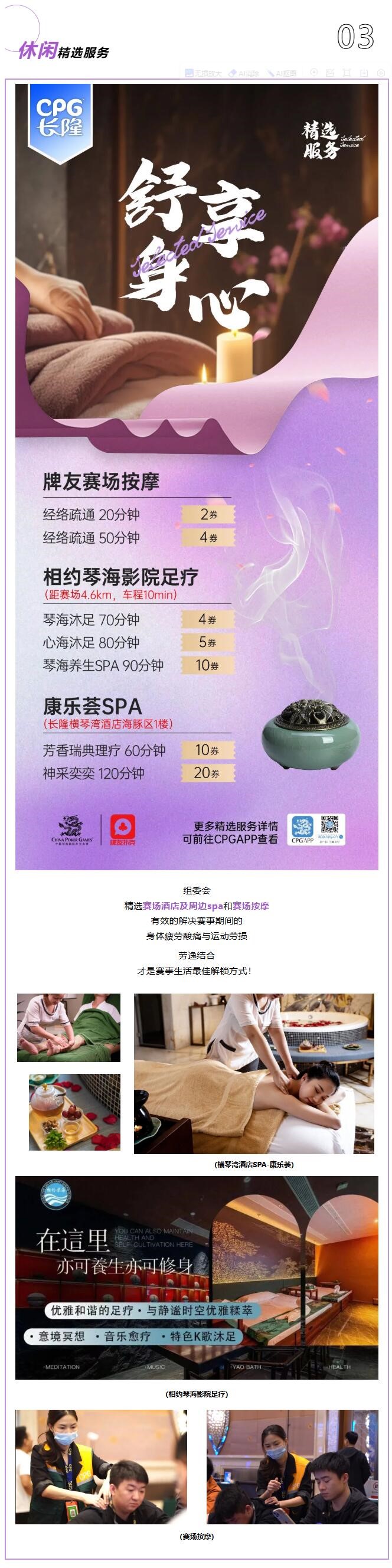 为让运动员们在参赛之余,全方位地感受横琴人文、美食、旅游,落实推进发展当地特色旅游经济,同时让运动员享受地道、经济、安全的赛事旅行服务,组委会提前深度探索横琴及赛场酒店周边的美食、美景、地方特产,联合各合作方及赞助商提供福利优惠,为赛事量身打造独具特色的美食、旅游、休闲、伴手礼服务: